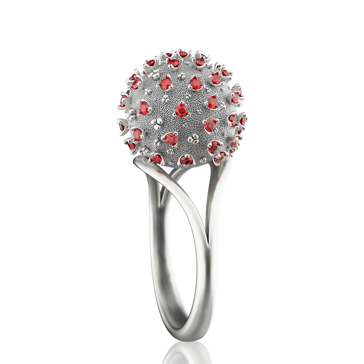 Surely, many people would ask why our company specializing in unique 3d jewelry designs came up with the decision to work on such an unusual jewelry design project at a time when Coronavirus Covid 19 has brought and continues bringing a lot of grief to humanity. For those, who find it insensitive or controversial, we can assure you that the idea behind this jewelry set – Coronavirus Covid 19 pendant and ring is to make a symbol of human challenge to this disease. We want to encourage people not to be afraid of the disease because if people stand to it together, despite its devastating effects all over the world, we will eventually conquer it and the victory will follow. By analogy, like many bikers order the skull rings to show that they are not afraid of death, our Coronavirus Covid 19 jewelry set makes a similar challenge to this virus. All of humanity must come together to join their efforts in conquering the disease and our jewelry set will be serving as a symbol of this victory.